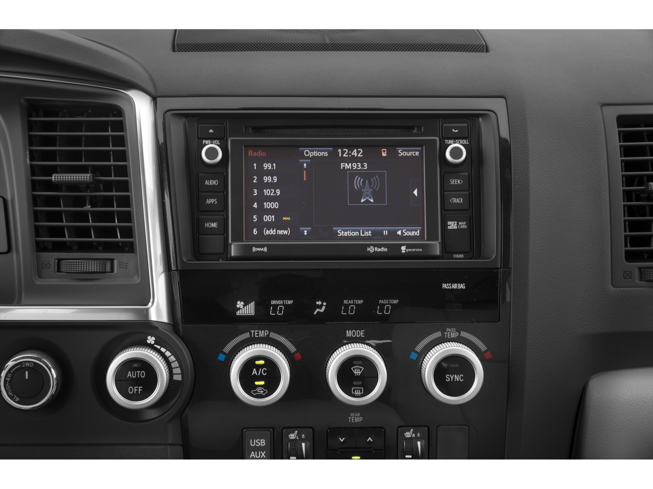 - Radio: Entune Audio Plus -inc: Connected Navigation App w/6.1" high-resolution touch-screen display, AM/FM/HD Radio, CD Player, 8 speakers, auxiliary port, USB 2.0 port, advanced voice recognition, hands-free phone capability, phone book access, music streaming via Bluetooth® wireless technology, Scout GPS Link compatible, Siri Eyes Free and SiriusXM Radio w/3-month all access trial, See toyota.com/entune for details